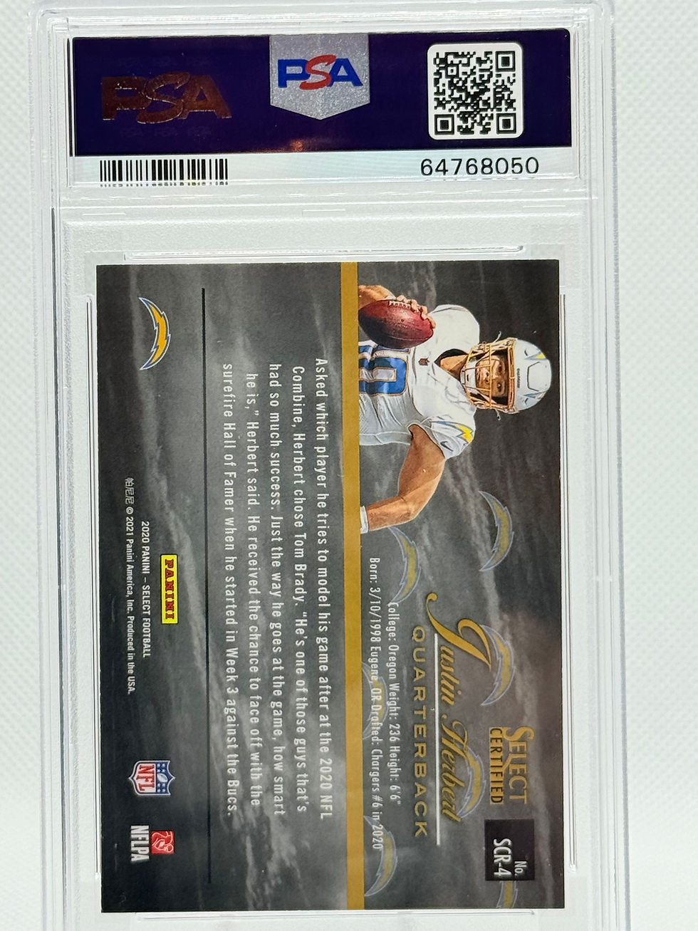 2020 Panini Select Certified Rookies Justin Herbert. PSA 9 Mint!! LA Chargers